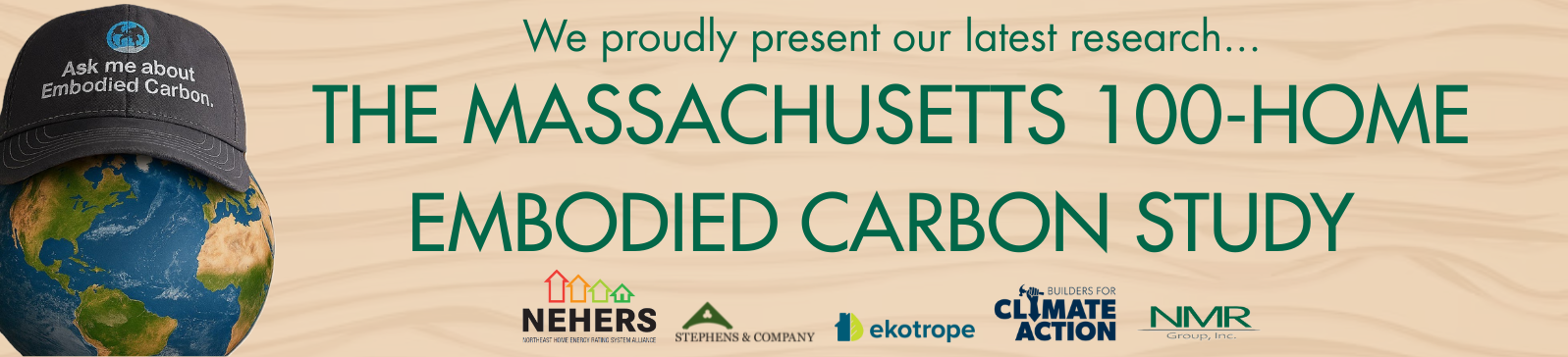 It is our humble pleasure to present the findings of our Massachusetts 100-Home Embodied Carbon Study. We hope this report serves as both a resource and a call to action. Please consider sharing it within your networks and incorporating embodied carbon analysis into your own work — whether you are a designer, builder, rater, policymaker or advocate.